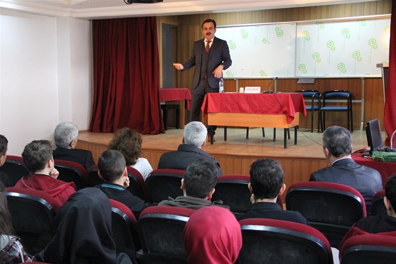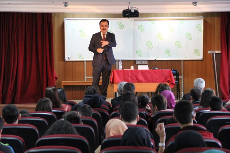 Meram Mesleki ve Teknik Anadolu Lisesince düzenlenen Kariyer Günlerinin 8.konuğu Konya Gençlik Hizmetleri ve Spor İl Müdürü Ömer Ersöz oldu. Okulun eski öğrencilerinden olan Ersöz, hayata dair düşüncelerini anlattı. Öğrencilerle karşılıklı sohbet içerisinde gerçekleşen söyleşide; Ülkemizin geleceğinin kendileri olduğunu Türkiye’nin büyük hedeflere kilitlendiğini bu anlamda kendilerine mutlaka bir hedef koymaları öz güvenlerini yitirmemeleri ve hedeflerini büyük tutmaları konusunda nasihatler verdi.