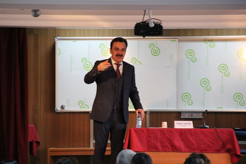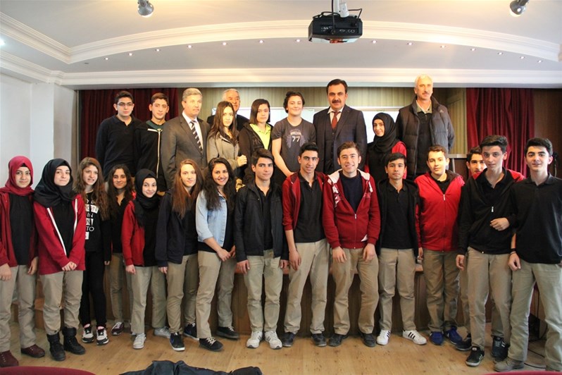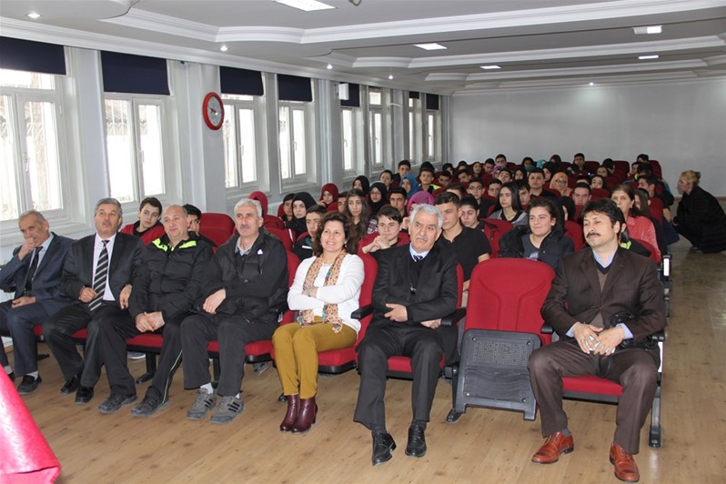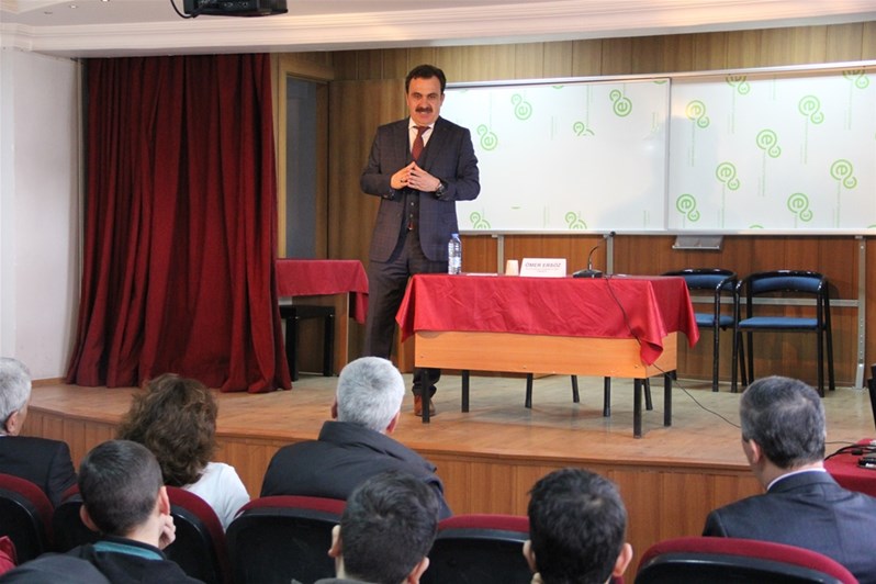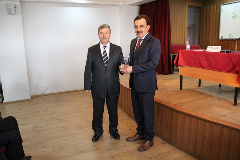 Söyleşi sonunda Meram Mesleki ve Teknik Anadolu Lisesi Okul Müdürü Ömer Faruk Karabulut, İl Müdürümüz Ömer Ersöz’e plaket taktim etti ve öğrencilerle beraber çektirilen hatıra fotoğrafı ile sona erdi.